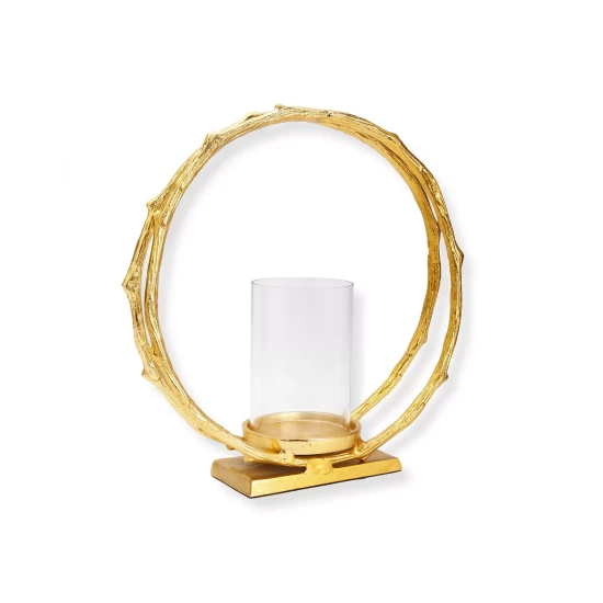 Polished in gold-tone, this candle holder converts your occasion into a 5 star event. The hurricane style holder is crafted in gold-tone plated iron for extra shine and durability. It can be used as a centerpiece on a decorated table or at a wedding event.