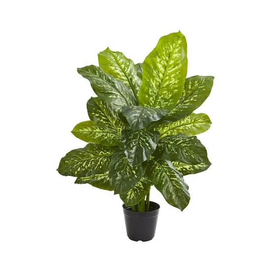 The dieffenbachia artificial plant stands at a height of 24-inches. It’s large, slightly variegated leaves curl outward and feel real to the touch. It’ll make a beautiful complementary piece in your living room when it’s settled next to a console table, bookshelf, or couch.