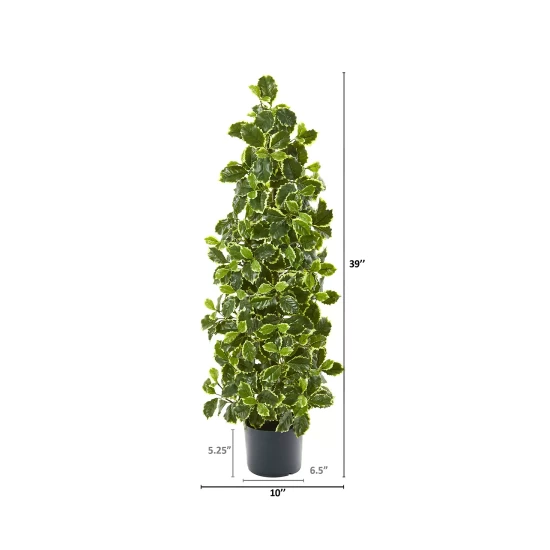 Create a focal point with this artificial tree boasting variegated holly leaf foliage – all of which feel real to the touch. Standing 39in. high, this silk tree would look handsome displayed near an entrance.