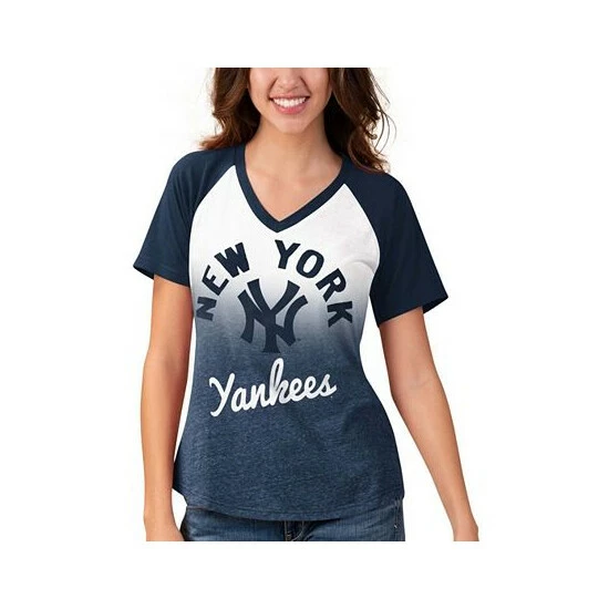 Cheer on the New York Yankees in style with this Shortstop Ombre raglan V-neck tee from Touch. Its team graphics and ombre design add a trendy addition to your wardrobe, making this a perfect pick for New York Yankees. Designed with comfortable material, this tee is always a home run.