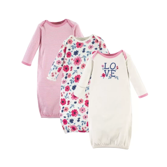 Touched by Nature organic cotton gowns feature playful patterns for sweet dreams. Our organic fabric is super-soft and gentle on baby’s skin, making sleep time cozy and comfortable. The elastic band at the bottom and a lap neck make dressing and diaper changes a breeze.